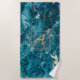 Luxury Elegant Blue Gold Marble Effect Monogram Beach Towel