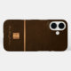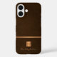 Classy exclusive looking office or personal monogrammed phone case featuring a faux copper metallic gold glitter square with your monogram name initials and a sparkling stripe over a stylish dark brown faux leather background. ++++++++++++++ Suitable for small business, corporate or independant business professionals, personal branding or stylists specialists, makeup artists or beauty salons, boutique or store managers. +++++++++++++++ Please note that the leather texture and glitter sparkle effects are PRINTED.