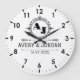 Create your own custom brand luxury watch. Timeless elegant watch dial design with fine indexes. Add your own custom monogram, custom name, designer name, initials, year of birth, logo, icon, photo image, etc. Sophisticated presence of modern minimalist style with elegant script typography template. Luxurious watch for him. Make it a cool new gift for boyfriend, boyfriend, dad, father, husband, brother, son, boyfriend, grandpa, grandpa, grandfather, stepdad, uncle, coworker, employee, company boss, business partner, colleague, best friend, teacher, coach or retiree. Unique monogrammed gift ideas for men's birthday, graduation, anniversary, retirement, vacation, wedding party, appreciation, employment, work, etc. Large diameter about 44mm. Classic vintage style with 22mm fashion black leather wrist strap. White or custom background color. Perfect for 20th, 30th, 40th, 50th, 60th, 70th, 80th, 90s celebrations. Affordable quartz watches under $100. Nice for casual daily wear and special occasions. Also available for other models with brown leather or steel bracelet.