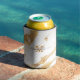 Luxury Elegant Script Monogram White Gold Marble Can Cooler