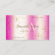 Make a lasting impression with this elegant and luxurious business card design featuring pretty gold ornate corner borders with cute hearts on a luminous shimmery girly pink coloured background.