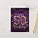 Luxury Glam Purple and Gold 50th Birthday Postcard