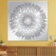 Elegant and fashionable stretched canvas print design with a shiny silver metallic filigree floral mandala on a silver background.