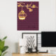 Transform your living space with our exquisite 18x24 inch real gold foil print, showcasing the ethereal beauty of a cherry blossom branch, a cage and birds known as sakura in Japan, against a customisable plum purple background. Crafted with meticulous attention to detail, this stunning artwork features delicate pink blush blossoms accented with shimmering real gold foil, adding a touch of luxury and modern elegance to your home.