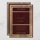 A chic sophisticated elegant gold and burgundy monogram initials stylish theme minimalist geometric luxury wedding invitations. This minimalist design features a lovely, simple geometric gold border design on a burgundy background. Customise this design with your message and personalised information. All designs are printed.