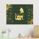 Get your real gold foil print 18x24 inch with a space cat silhouette in complete gold shiny tones surrounding with hearts, minimal shapes and with a dark green background . It has a luxury style with the real gold foil and is nice for coastal homes. Customise it with a short quote or your cat´s name and choose different sizes.
