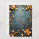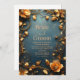 Make your wedding unforgettable with this luxurious invitation featuring golden floral accents on an elegant teal background. The ornate gold flowers and swirling leaves frame the centre, providing the perfect space to showcase your wedding details in style. This sophisticated design is ideal for couples seeking a blend of opulence and romance for their special day. Customisable text allows you to personalise it to match your wedding theme. Perfect for formal, glamourous, or vintage-themed weddings.