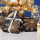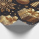 Wrap your holiday gifts in style with this luxurious black and gold Christmas wrapping paper. Featuring elegant gold foil–style snowflakes, ornaments, and twinkling stars on a chic black background, this design brings a modern glam touch to your presents.