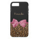 Luxury Gold Fur Leopard Print Mauve Bow With Name Case-Mate iPhone Case