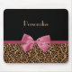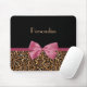 Luxury Gold Fur Leopard Print Mauve Bow With Name Mouse Mat