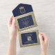 Luxury Gold Glitter and Navy Blue QR Code Wedding All In One Invitation