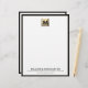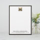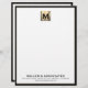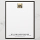 This luxurious business letterhead features a striking square brushed metallic medallion at the top, with your monogram and name elegantly displayed. The white background is framed with a bold black leather print border, creating a sophisticated look that is perfect for business correspondence. Personalise with your own name and contact information to create a truly custom letterhead that is sure to impress.