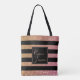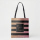 Luxury Gold Pink Glitter Stripes Monogram Name Tote Bag