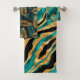 Luxury Gold Teal Tiger Stripe & Tropical Leaves Bath Towel Set