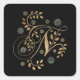 Luxury Golden Calligraphy Monogram with letter N Square Sticker