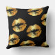 Luxury throw pillow with faux golden lips kisses pattern on a black background. Perfect for a wedding for example.