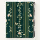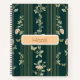 This elegant spiral notebook features a refined botanical design set against a deep emerald green background, creating a rich and luxurious visual appeal. Delicate floral illustrations and soft leafy vines are thoughtfully arranged with fine vertical gold lines, adding a sense of balance, sophistication, and timeless charm.