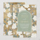 This chinoiserie-inspired design features elegant botanical florals, birds, and greenery in sage green and ivory white, set against a luxurious metallic gold background. Personalise the invite with your details, and if you want to further rearrange the style and placement of the text, please press the "Click to customise further" button.