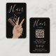 Ideal for hairstylists, hairdressers, salon owners, booth renters, and beauty entrepreneurs, this card includes space for contact details, social media icons, and a QR code for instant client connection. Its modern aesthetic is perfect for professionals specializing in hair coloring, balayage, bridal hair, extensions, precision cuts, and luxury salon services.