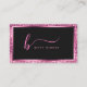 Luxury Hot Pink Glitter Modern Script Monogram Bus Business Card