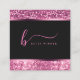 Luxury Hot Pink Glitter Modern Script Monogram Square Business Card