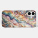 A breathtaking and vibrant phone case design featuring a magical iridescent agate texture. Flowing waves of rainbow colours—teal, purple, gold, and pink—shimmer with a holographic glow, intertwined with elegant sparkling gold veins. This sophisticated abstract art provides a radiant and high-end aesthetic for your smartphone.