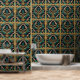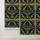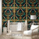 Transform your space with this modern, elegant, and stylish wallpaper, featuring a luxurious malachite stone texture in rich emerald green and gold. Inspired by Art Deco design, it showcases a Greek mandala pattern, vintage damask floral motifs, and abstract ancient grunge elements, creating a retro yet trendy aesthetic.
