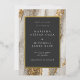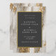 A stunning modern wedding invitation featuring a sophisticated dark charcoal background framed in metallic gold, set against a marble and glitter texture. This design blends timeless elegance with contemporary luxury