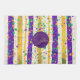 Bring the opulence and celebratory spirit of Mardi Gras into your living space with this luxurious decorative kitchen towel, inspired by the timeless elegance of carnival traditions. The illustration features bright colorful stripes in purple, green, and gold, sprinkled with confetti patterns, playful festive style, vibrant and cheerful. In the center is text that can be personalized with your Name or Monogram. You can also remove it if you want the pattern only.
