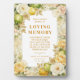This refined memorial plaque features a delicate Mediterranean-inspired frame composed of carefully illustrated lemons and flowers, bringing freshness, brightness, and an elegant, sophisticated feel. The harmonious combination of citrus and botanical elements creates a visually appealing and distinctive design, while the digital glitter effect adds a subtle shimmer that enhances the beauty and solemnity of the memorial.