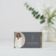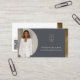 Present your brand with sophistication using our Luxury Modern Arch Monogram Photo Business Card Template. This clean and contemporary design features a customizable business photo on the front, enhanced with a sleek arch-shape element that frames an elegant, minimal monogram crest with refined gold accents. Your name and job title are highlighted in a modern, upscale layout, complemented by a faux gold strip along the bottom for an extra touch of luxury. The reverse side maintains a clean and minimal aesthetic, showcasing the coordinating arch monogram crest, neatly organized contact details, and a customizable QR code to help clients connect with ease. Perfect for professionals seeking a polished, high-end look—ideal for luxury real estate agents, financial advisors, law firms, brokers, consultants, and more. Design and layout by © Moodthology Papery.