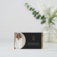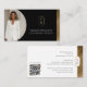 Present your brand with sophistication using our Luxury Modern Arch Monogram Photo Business Card Template. This clean and contemporary design features a customizable business photo on the front, enhanced with a sleek arch-shape element that frames an elegant, minimal monogram crest with refined gold accents. Your name and job title are highlighted in a modern, upscale layout, complemented by a faux gold strip along the bottom for an extra touch of luxury. The reverse side maintains a clean and minimal aesthetic, showcasing the coordinating arch monogram crest, neatly organized contact details, and a customizable QR code to help clients connect with ease. Perfect for professionals seeking a polished, high-end look—ideal for luxury real estate agents, financial advisors, law firms, brokers, consultants, and more. Design and layout by © Moodthology Papery.