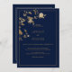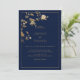 Luxury modern gold floral navy blue Wedding Invitation