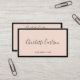 A luxury minimalist business card featuring your name in chic modern script calligraphy against a blush pink background. The layout is framed with thin black lines for a classic and sophisticated look. This modern elegant design is perfect for leaving a lasting impression on your clients. It's an ideal choice for beauty-related businesses such as a makeup artist, hair stylist, personal stylist, beauty salon owner, and other female entrepreneurs. You can customise the front with your business name and website (or location), and add your contact information, including telephone number, address, email, and website address on the back.