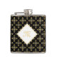 Luxury Monogram Black and Gold Quatre Floral Hip Flask