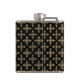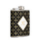 A luxury black and gold four point quatre floral pattern 6 oz. flask that can be personalised by adding your monogram. This elegant vintage monogrammed damask design is sure to bring out your sophisticated side. Flat printed image, not metallic.