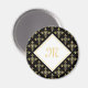A luxury black and gold four point quatre floral pattern magnet that can be personalised by adding your monogram. This elegant vintage monogrammed damask design is sure to bring out your sophisticated side. Flat printed image, not metallic.