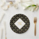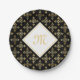 Luxury Monogram Black and Gold Quatre Floral Paper Plate