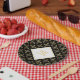 Luxury black and gold four point quatre floral pattern paper plates that can be personalised by adding your monogram. This elegant vintage monogrammed damask design is sure to bring out your sophisticated side. Flat printed image, not metallic.