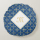 Luxury Monogram Blue and Gold Quatre Floral Round Cushion