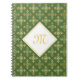 A luxury green and gold four point quatre floral pattern notebook that can be personalised by adding your monogram. This elegant vintage monogrammed damask design is sure to bring out your sophisticated side. Flat printed image, not metallic.