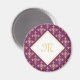 A luxury purple and gold four point quatre floral pattern magnet that can be personalised by adding your monogram. This elegant vintage monogrammed damask design is sure to bring out your sophisticated side. Flat printed image, not metallic.