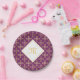Luxury purple and gold four point quatre floral pattern paper plates that can be personalised by adding your monogram. This elegant vintage monogrammed damask design is sure to bring out your sophisticated side. Flat printed image, not metallic.