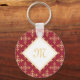 A luxury red and gold four point quatre floral pattern keychain that can be personalised by adding your monogram. This elegant vintage monogrammed damask design is sure to bring out your sophisticated side. Flat printed image, not metallic.