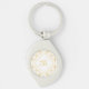 A luxury white and gold four point quatre floral pattern metal swirl keychain that can be personalised by adding your monogram. This elegant vintage monogrammed damask design is sure to bring out your sophisticated side. Flat printed image, not metallic.