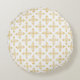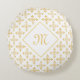 A luxury white and gold four point quatre floral pattern round throw pillow that can be personalised by adding your monogram. This elegant vintage monogrammed damask design is sure to bring out your sophisticated side. Flat printed image, not metallic.