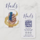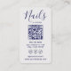 The front design highlights beautifully manicured nails wrapped in shimmering gold details, symbolizing precision, luxury, and expert craftsmanship. The back is clean and functional, offering space for essential contact details, phone number, QR code for easy appointment booking, business address, website, and social media icons—perfect for modern nail technicians and salon owners.