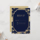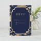 Luxury navy blue and gold floral RSVP Invitation