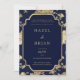 Luxury navy blue and gold floral Wedding Invitation