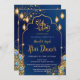 Elevate your Ramadan celebration with this stunning Iftar invitation. Featuring a majestic navy blue background adorned with shimmering gold peacock feathers, glowing traditional lanterns, and a grand Islamic arch frame. The sparkling golden bokeh accents add a touch of magic and sophistication. Perfect for high-end Iftar dinners, Eid Al-Fitr parties, or any festive Islamic event. Fully customizable for your personal details.